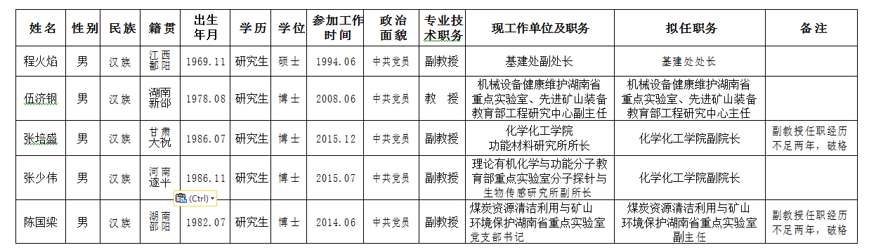 为了加强对干部选拔工作的监督,提高识别和任用干部的准确程度,现对校党委会研究决定的拟任职人选进行任前公示:
