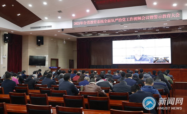 4月8日上午,省教育厅召开全省教育系统全面从严治党工作视频会议暨警示教育大会,我校全体校领导,纪委委员,各二级党组织党政主要负责人,机关各处室、直属单位、独立科研单位主要负责人,各二级党组织纪检委员,纪检监察部门全体成员在立德楼附A楼5楼报告厅参会。